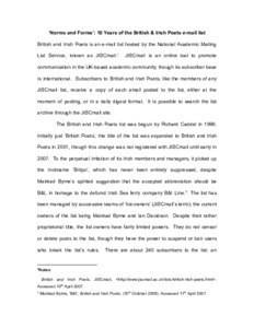 ‘Norms and Forms’: 10 Years of the British & Irish Poets e-mail list.