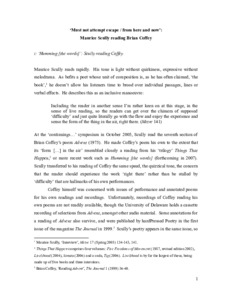 ‘Must not attempt escape/from here now’: Maurice Scully Reading Brian Coffey.