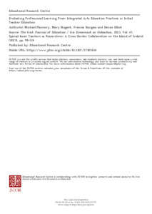 Four teacher educators working in two higher-education institutes conducted a SCoTENS-funded self-study of possibilities and pitfalls of integrated arts practices in initial teacher education. Issues examined include most effective interdisciplinary methods, resolutions to issues encountered, professional development, and lived model as a lens for critique, and the SCoTENS research report as a data source,