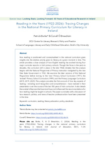 How reading is positioned and conceptualised in the national curriculum gives insights into the relative priority given to literacy at a given moment in time. This article provides a close analysis of how English reading has evolved during four major curricular epochs in Irish primary schools. Though the focus is the past six decades, the curriculum still in place in the late 1960s dictates that the analysis begins with the National Programme of Primary Instruction instigated by the new Free State Government in 1922. We examine the later versions of this National