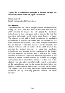 A place for translation technologies in disaster settings: the case of the 2011 Great East Japan Earthquake.
