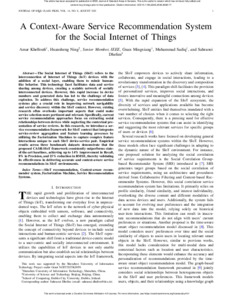 relationships between devices while neglecting the contextual presentation of service reviews. In this research, we introduce a service recommendation framework for SIoT context that integrates