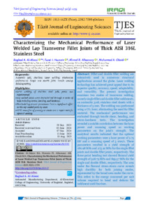 Characterizing the Mechanical Performance of Laser Welded Lap Transverse Fillet Joints of Thick AISI 316L Stainless Steel.